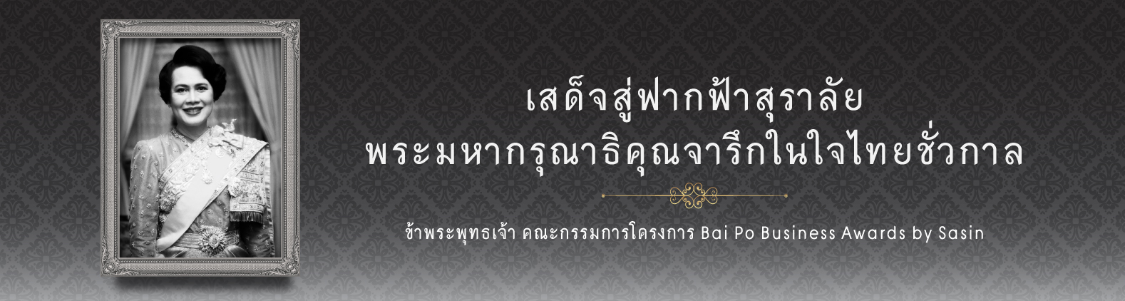 โครงการ Bai Po Business Awards by Sasin อาคารศศปาฐศาลา สถาบันบัณฑิตบริหารธุรกิจ ศศินทร์ ถนนพญาไท ปทุมวัน กรุงเทพฯ 10330 โทรศัพท์ 02-218-4001-9 ต่อ 179 หรือ 02-722-2222 โทรสาร 02-611-8958 อีเมล์ consulting@sasin.edu ©2007-2024 Bai Po Business Awards by Sasin. All rights reserved. Powered by The Siam Commercial Bank PCL.
